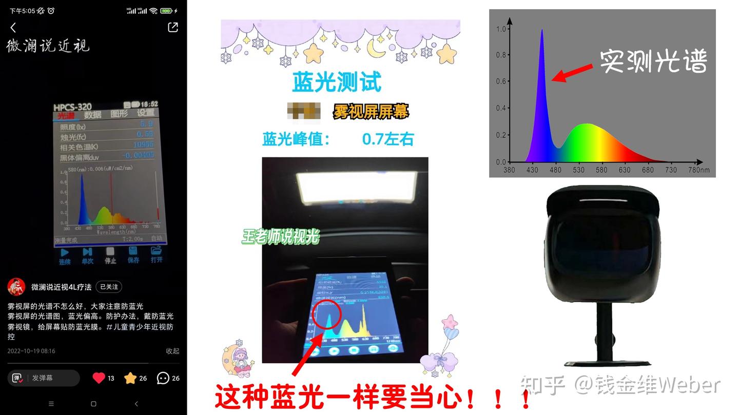 这个问题许多博主都实测过了,远像光屏的蓝光还是很高的,不过有一些讲法存在问题: