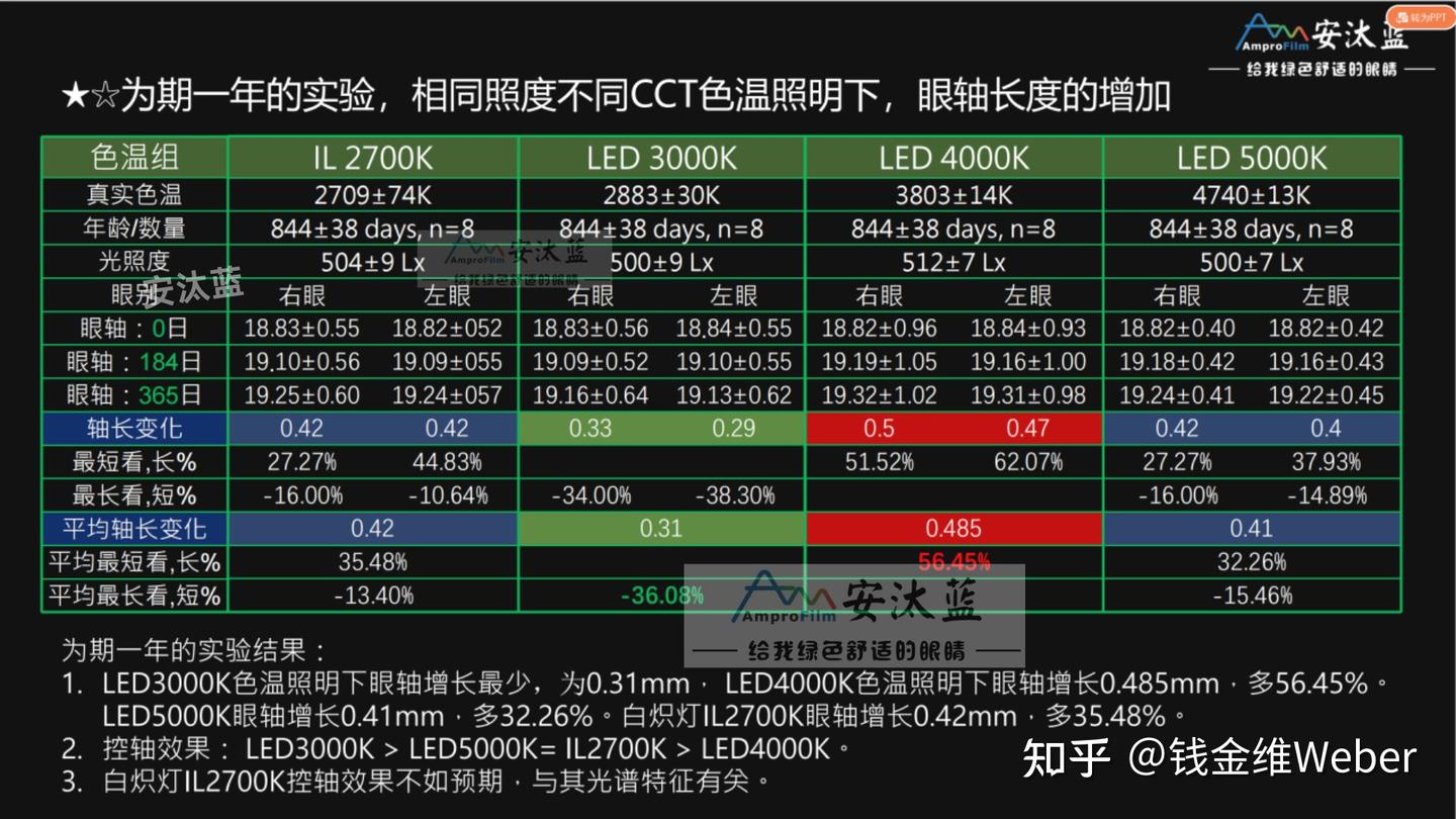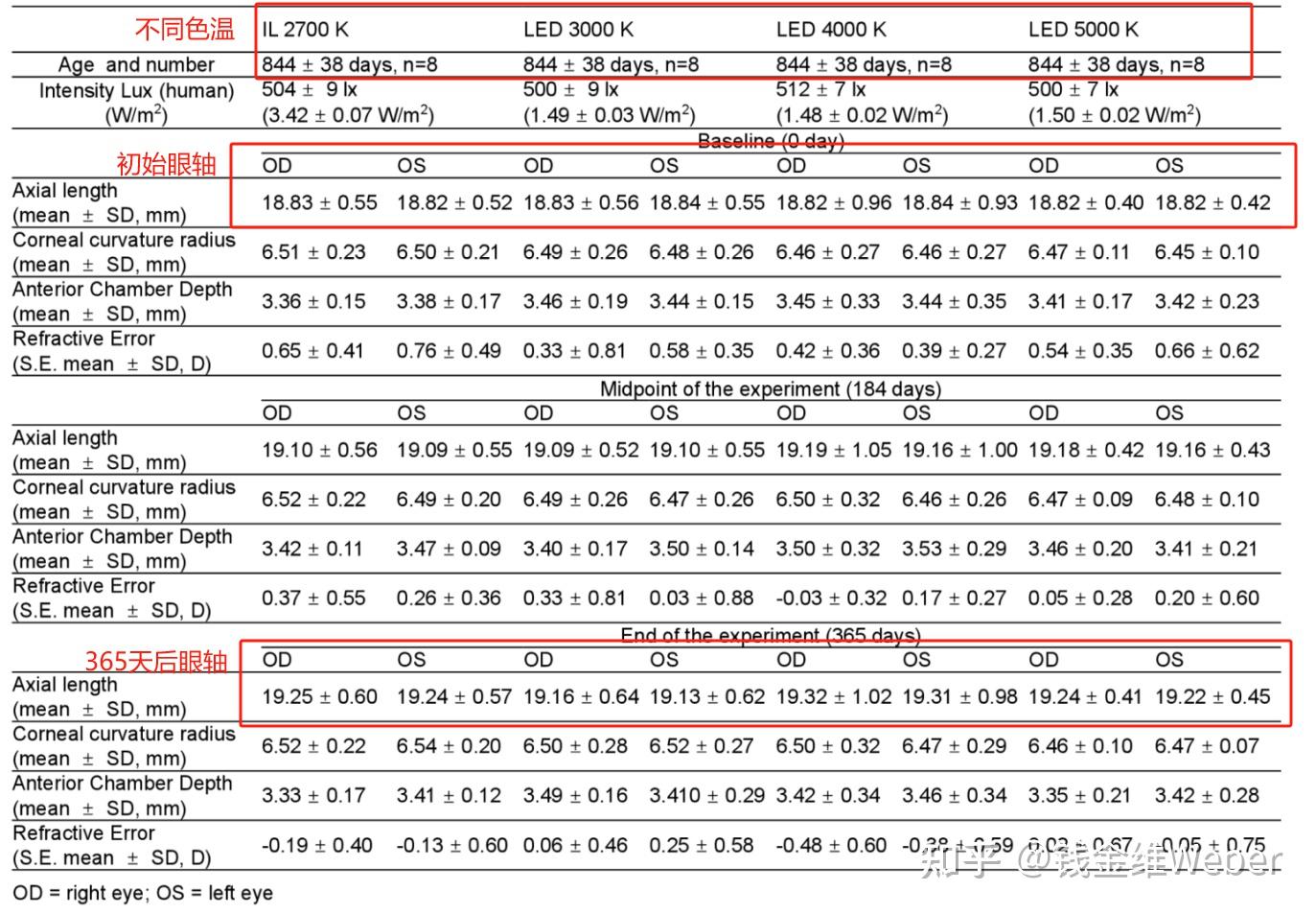 经过长达365天的细致观察,在LED灯的不同实验组中发现了显著的差异:在低色温3000K的LED光照条件下,幼猴的眼轴增长率明显低于高色温4000K和5000K的LED灯光照下的增长率。