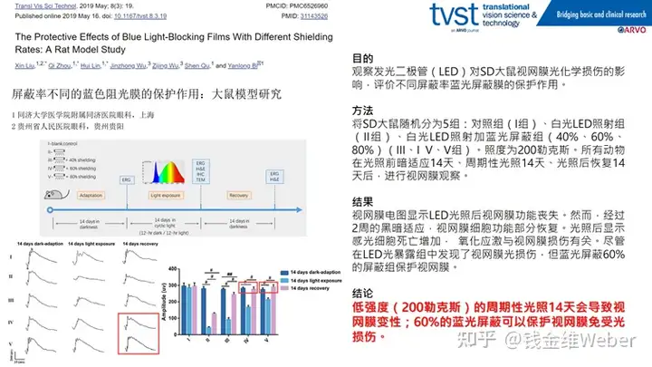 [2] Liu Xin, Zhou Qi, Lin Hui, Wu Jinzhong, Wu Zijing, Qu Shen, Bi Yanlong. The Protective Effects of Blue Light-Blocking Films With Different Shielding Rates: A Rat Model Study[J]. Translational Vision Science & Technology, 2019,8(3).