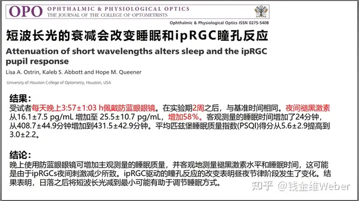 [1] Ostrin Lisa A, Abbott Kaleb S, Queener Hope M. Attenuation of short wavelengths alters sleep and the ipRGC pupil response[J]. Ophthalmic & Physiological Optics, 2017,37(4).