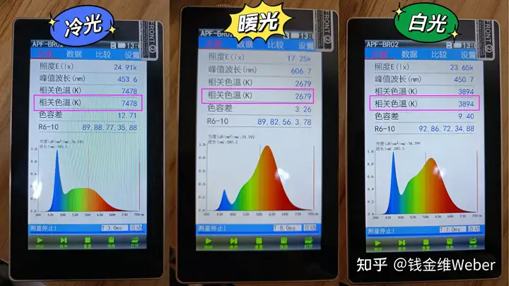 6500K是什么概念呢?色温越高,蓝光越高,6500K属于较冷的光源,蓝光总之含量是很高的,可以参考一下三色灯实测色温,暖光<3000K,白光4000K左右,六七千都算是高蓝光的冷光了。