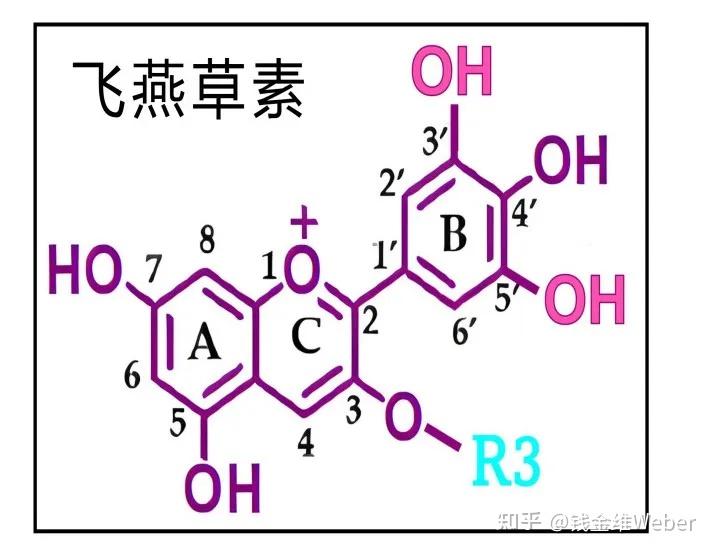 黑加仑花青素主要由以下几种成分构成:47%的飞燕草素-3-芸香苷(D3R)、13%的飞燕草素-3-葡萄糖苷(D3G)、35%的矢车菊素-3-芸香苷(C3R)以及5%的矢车菊素-3-葡萄糖苷(C3G)[3]。