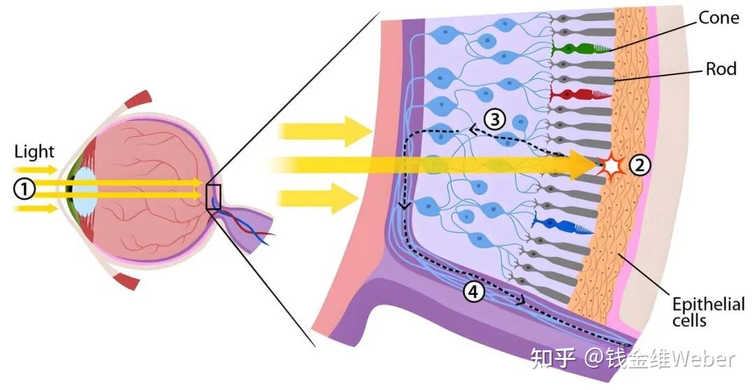 在这一连串的视觉反映中,光电转换的效率尤其重要。而视紫红质就存在于光感受器中,由维生素A和视蛋白合成。视紫红质吸收光子之后会氧化,它的再生速度则直接决定了光电转化的效率,进而影响我们的视觉质量。