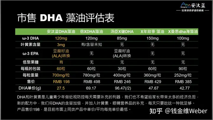 由此观之,排除法也应该选海藻油制作的DHA。海藻中的DHA是通过自身机制生成的,为避免生长环境带来的污染,有些藻油DHA的生产商会选用人工培植的海藻,以保证其纯度——这一点在选购时可以作为加分项。