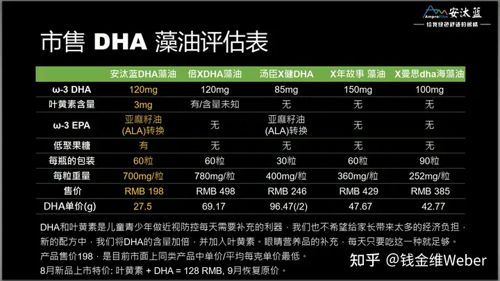 【我们建议,安汰蓝DHA藻油每日4粒(DHA:120x4=480mg;叶黄素:3x4=12mg),如有近视防控、干眼症等特殊需求,可再酌量增加。】