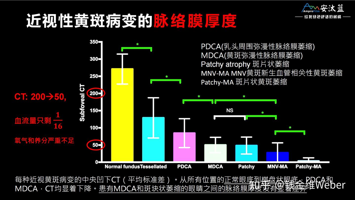 当脉络膜厚度从200微米变成50微米时,脉络膜的血流量只剩之前的1/16,供给视网膜的氧气和养分严重不足。