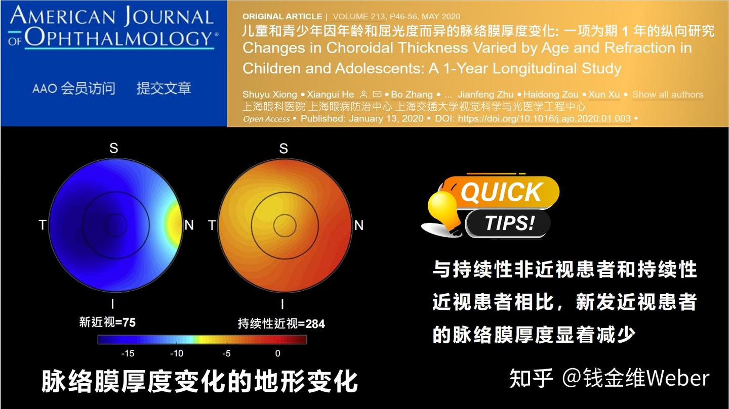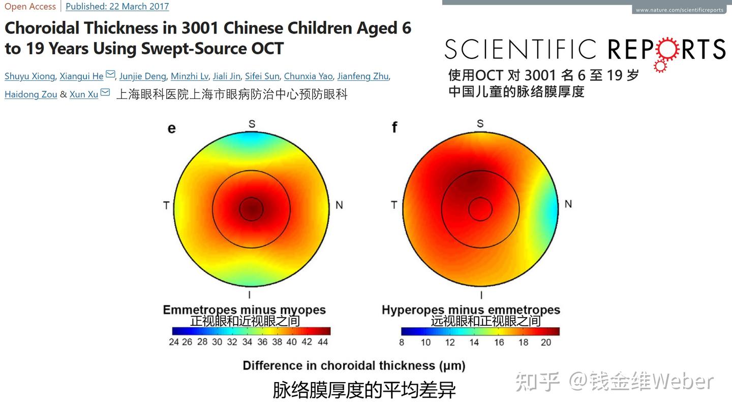 上海眼科医院上海市眼病防治中心预防眼科在《Nature》杂志上发表了一项重要研究[1]。该研究针对3001名6至19岁的中国儿童进行了脉络膜厚度的测量,并将他们分为近视组和未近视组。通过对比分析,研究者发现近视儿童与未近视儿童在脉络膜厚度上存在显著差异。