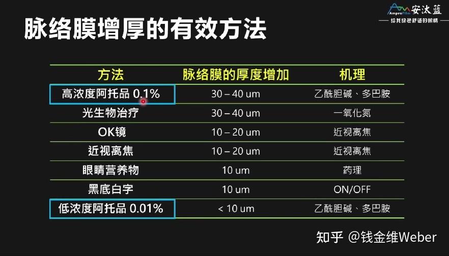 不同防控方法达到的增厚脉络膜数据效果对比: