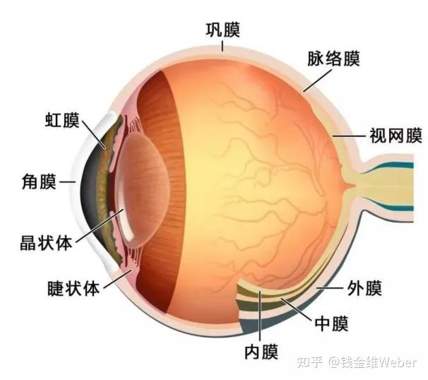 视网膜作为眼睛的关键组件,在视觉过程中扮演着至关重要的角色,尤其是其光电转换功能。让我们来详细看下视网膜的复杂结构(如图示)。