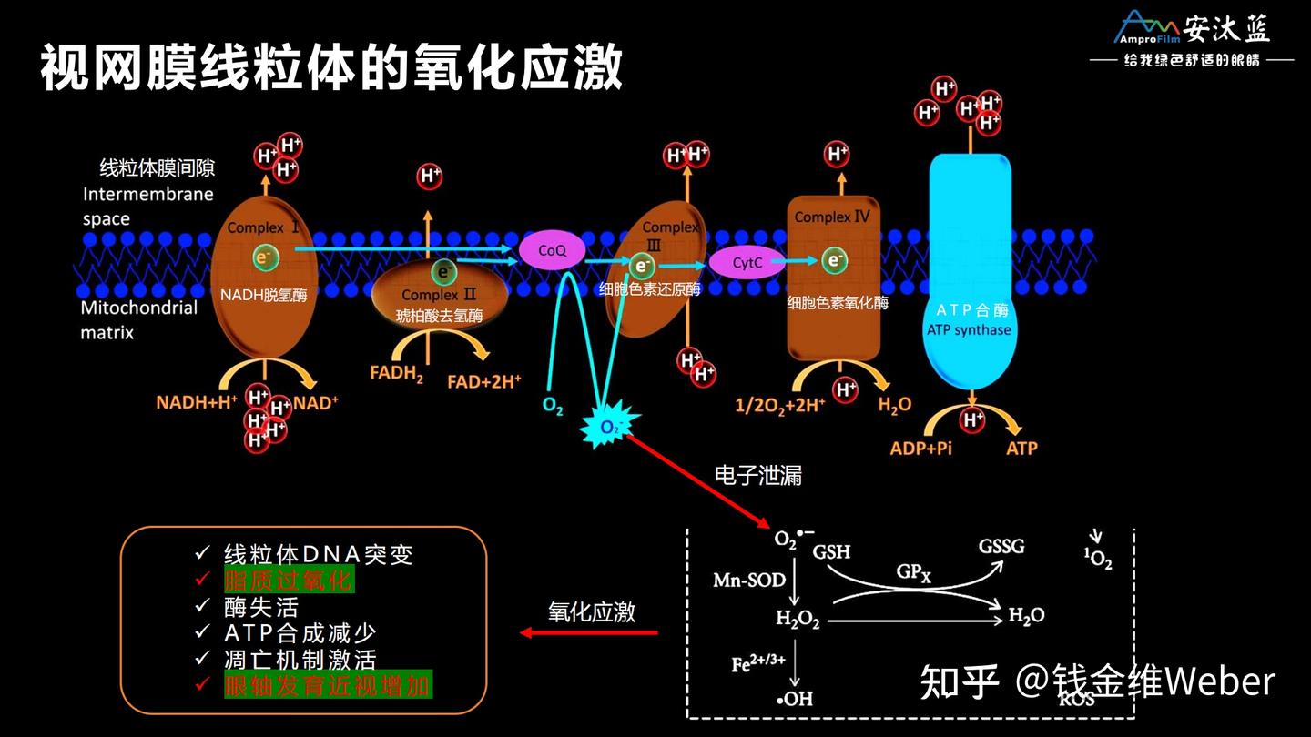 当脉络膜厚度减少时,视网膜将面临氧气和养分供应不足的问题,这导致感光细胞中的氧化速率异常升高,成为人体中氧化速率最高的组织之一。高耗氧量的组织和器官往往衰老速度更快,能量消耗速率与老化速度成正比。因此,脉络膜变薄引发的氧气供应不足问题,会加速视网膜的衰老和损伤进程。在这一过程中,线粒体呼吸作用的电子传递链中,电子传递效率降低,导致电子泄漏并与氧气结合,形成活性氧自由基。