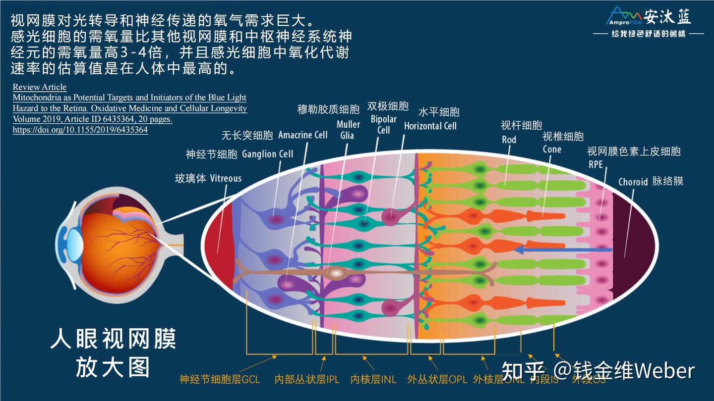 前面说过视网膜是全身耗氧量最高的组织,是人眼中工作强度最大的组织,一天24小时除了睡眠时间外,都一直在进行光电转换,把讯号传入大脑还原出影像。